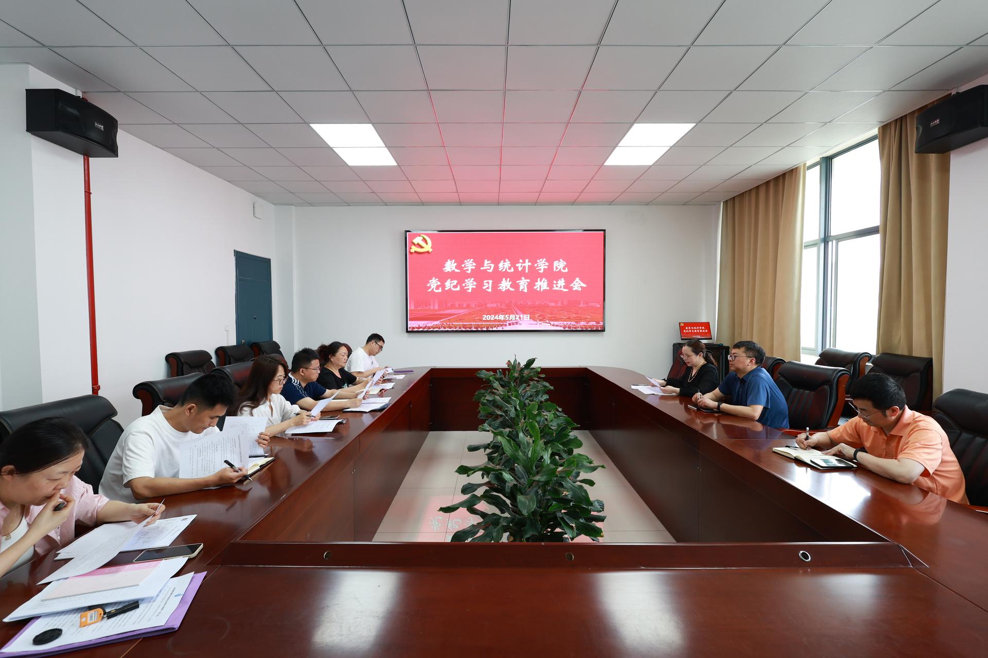 5月21日下午,数学与统计学院召开党纪学习教育推进会,学院领导班子成员、各支部书记参加会议。学院党总支副书记、副院长侯蔚主持会议。