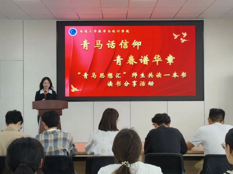 为深入贯彻落实习近平新时代中国特色社会主义思想,围绕立德树人根本任务,传承红色基因,厚植家国情怀,4月16日下午,南通大学数学与统计学院于啬园校区36号楼219开展“青马话信仰,青春谱华章”青马思想汇——师生同读一本书活动。
