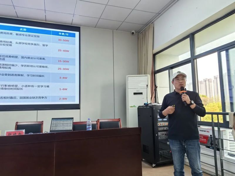 讲座特邀苏州服务中心的陆晓白老师主讲。陆老师凭借丰富经验,深入剖析海外留学目标,从专业深造、学历提升到就业移民规划方面详细讲解。他指出,留学后就业选择多元,归国或留驻海外皆有前景。院校选择时,学生需结合当地企业用人标准,综合考量学术实力、专业特色、地理位置等,让留学助力职业发展。