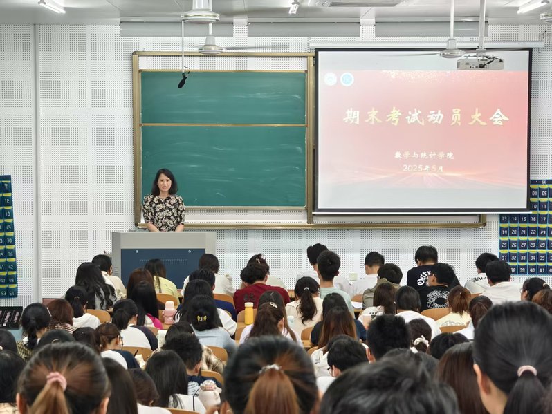 为深入贯彻落实学院学风建设要求,引导2024级本科生科学规划复习路径,营造积极向上的备考氛围,5月19日,数学与统计学院召开期末考试动员大会。学院副书记兼副院长邵春燕、辅导员施恒及全体大一学生共同参会。