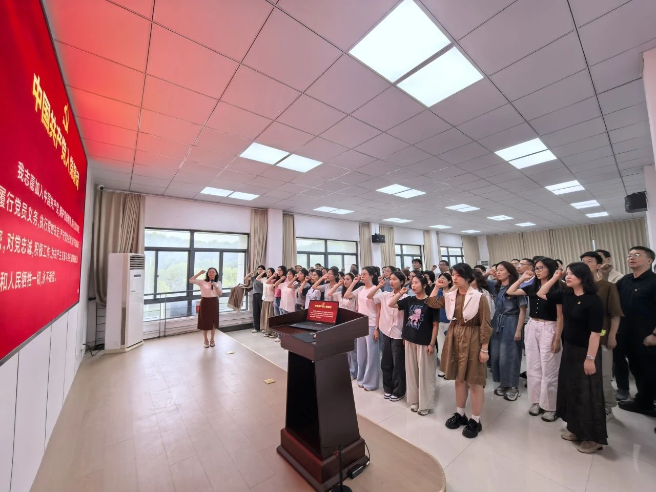 活动最后,全体党员面向党旗,庄严重温入党誓词。铿锵的誓言提醒着大家时刻牢记党员身份,永葆政治本色。