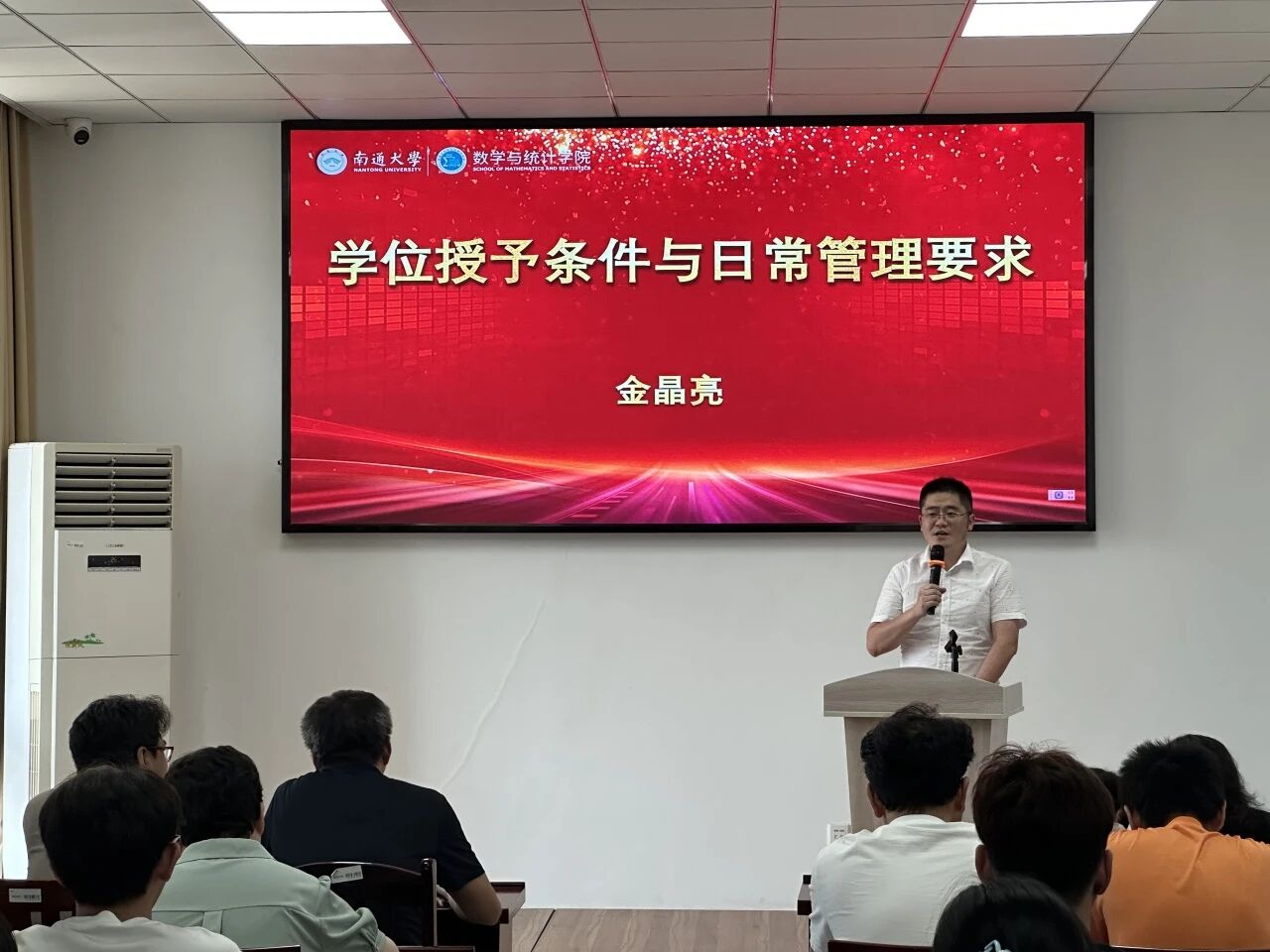 9月5日上午9:30,南通大学数学与统计学院 2025 级研究生新生见面会在 36 号楼 507 会议室举行。学院领导、导师代表、研究生辅导员、科研秘书以及全体 2025 级研究生参与本次活动,会议由党总支副书记、副院长邵春燕老师主持。