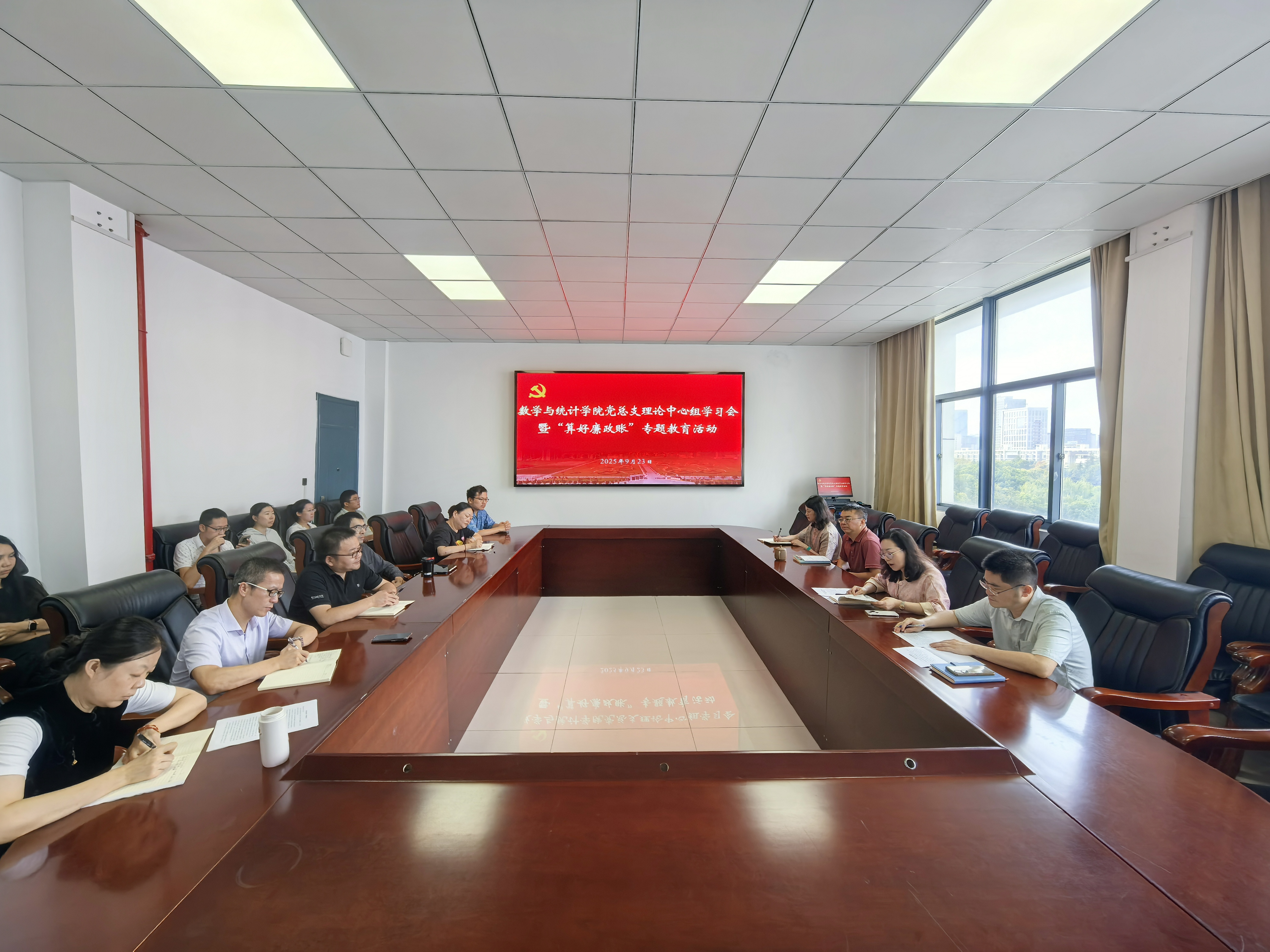 9月23日,数学与统计学院党总支开展理论中心组学习暨“算好廉政账”专题教育会议,以“五个一”活动为主要抓手,扎实推进“算好廉政账”专题教育月活动。