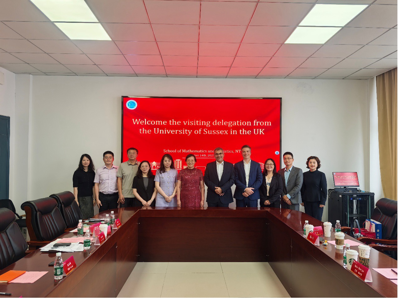 祁小峰处长介绍了我校中外合作办学的整体布局与工作成果。王林峰院长围绕学科设置、师资队伍和科研平台等方面介绍了学院概况,并表示萨塞克斯大学享有卓越的国际声誉,期待以此次交流为起点,深化双方在联合培养与科研合作等领域的对接。金晶亮副院长就应用统计学(中外学分互认)专业的学生规模、学业表现及海外衔接情况作专题汇报,并提出在现有合作基础上拓展多元培养路径,借助国际优质教育资源持续提升学院教学质量。