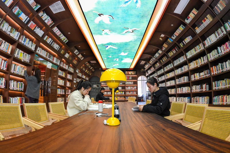 2024年1月4日,读者在江西省宜春市袁州区珠泉街道狮子山公园城市书房内阅读、学习。新华社发(周亮 摄)