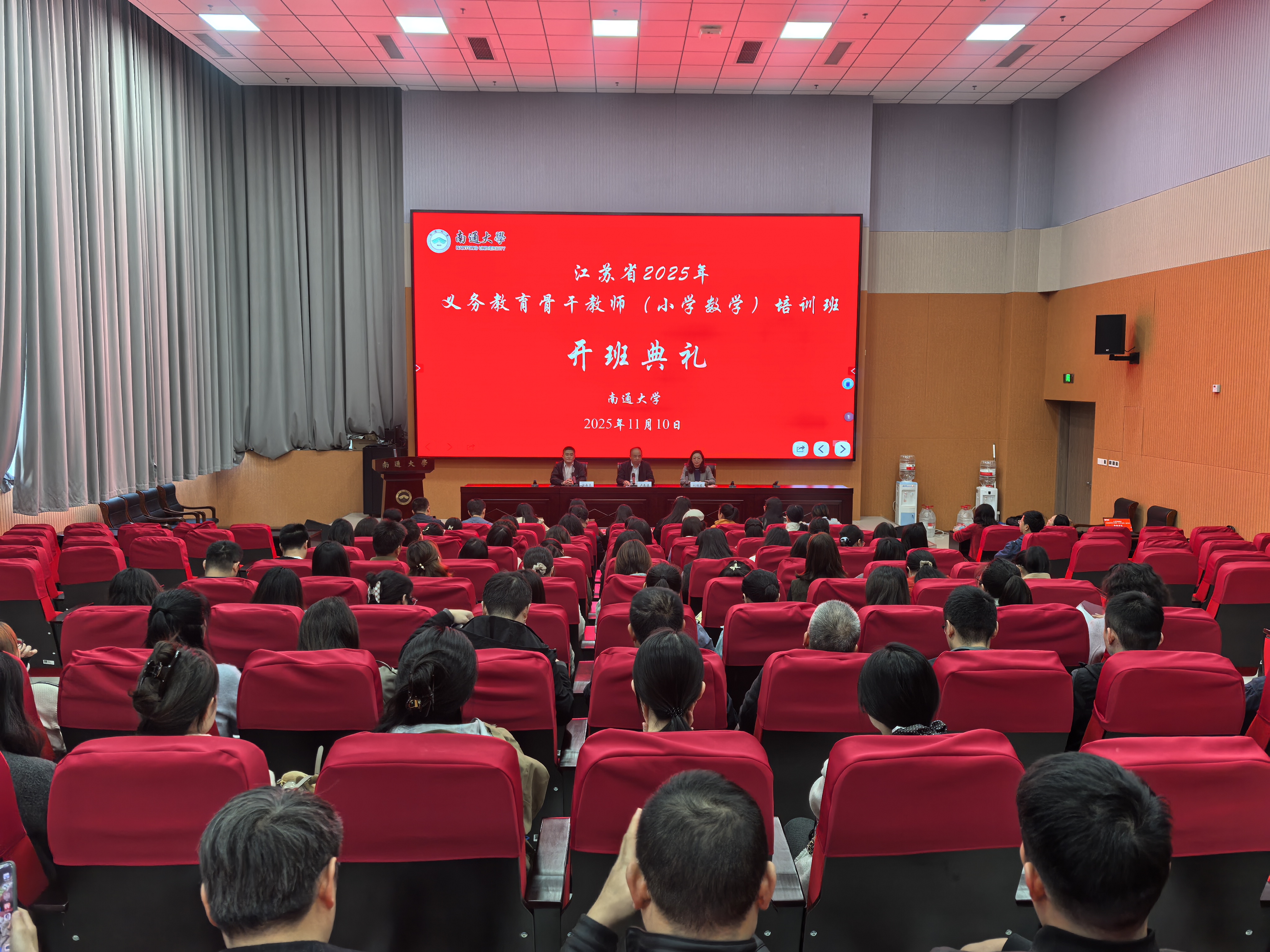11月10日至14日,江苏省2025年义务教育骨干教师(小学数学)培训班在我校顺利开班。来自全省各地的100名小学数学教育骨干齐聚南通大学,开启为期5天的专业研修。