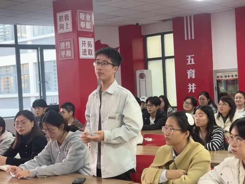数师251周郅清同学在分享中系统解读了《为什么是中国》第三章的核心要义,指出马克思主义中国化时代化历程是中国共产党理论创新的生动实践。他强调这一理论体系既坚守了马克思主义真理,又融合了中国具体实际与优秀传统文化,展现出强大的生命力与指导意义。作为新时代青年,我们应当深入学习党的创新理论,将坚定信仰与专业学习相结合,把个人理想融入国家发展大局,用实际行动为中华民族伟大复兴贡献青春力量。