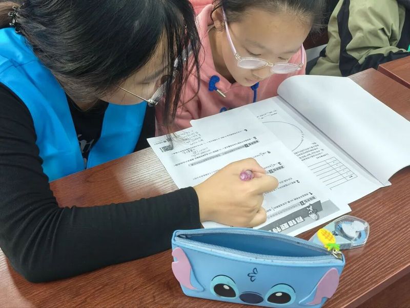 活动伊始,社团志愿者们与孩子们一对一结对,进行精准的课业辅导。面对数学题中绕人的逻辑、语文拼音的易错点,志愿者们摒弃刻板讲解,巧妙运用“生活案例类比”和“趣味口诀记忆”等方法,引导孩子们主动思考。