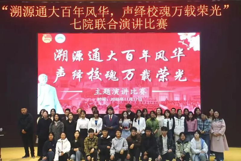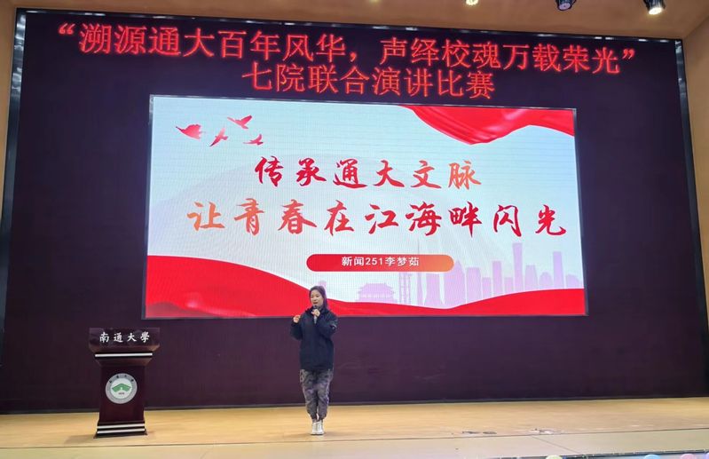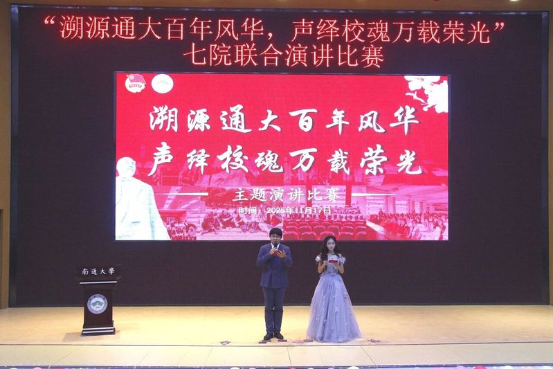 为传扬校魂精神,深挖校史细节,凝聚集体认同,共筑青春向心力,2025年11月17日,数学与统计学院联合教育科学学院,协同文学院、历史文化学院(法学院)、商学院(管理学院)、外国语学院和地理科学学院在南通大学启东校区大学生活动中心举办“溯源通大百年风华,声绎校魂万载荣光”七院联合演讲比赛。