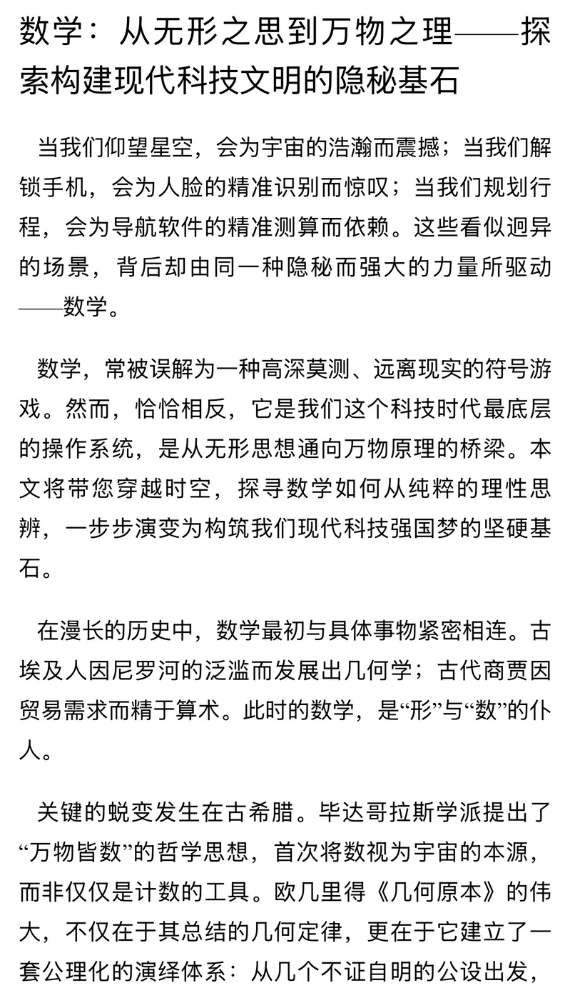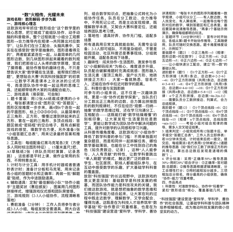 本次大赛设置多个创作类别,涵盖图文、视频、编程、游戏设计及其他创新形式,为参赛者提供丰富表达空间。共征集30余份数学科普作品,评选出若干优秀作品,所有作品紧扣“数学”“传承”“未来”“强国”核心内涵,兼具科学性与传播力。