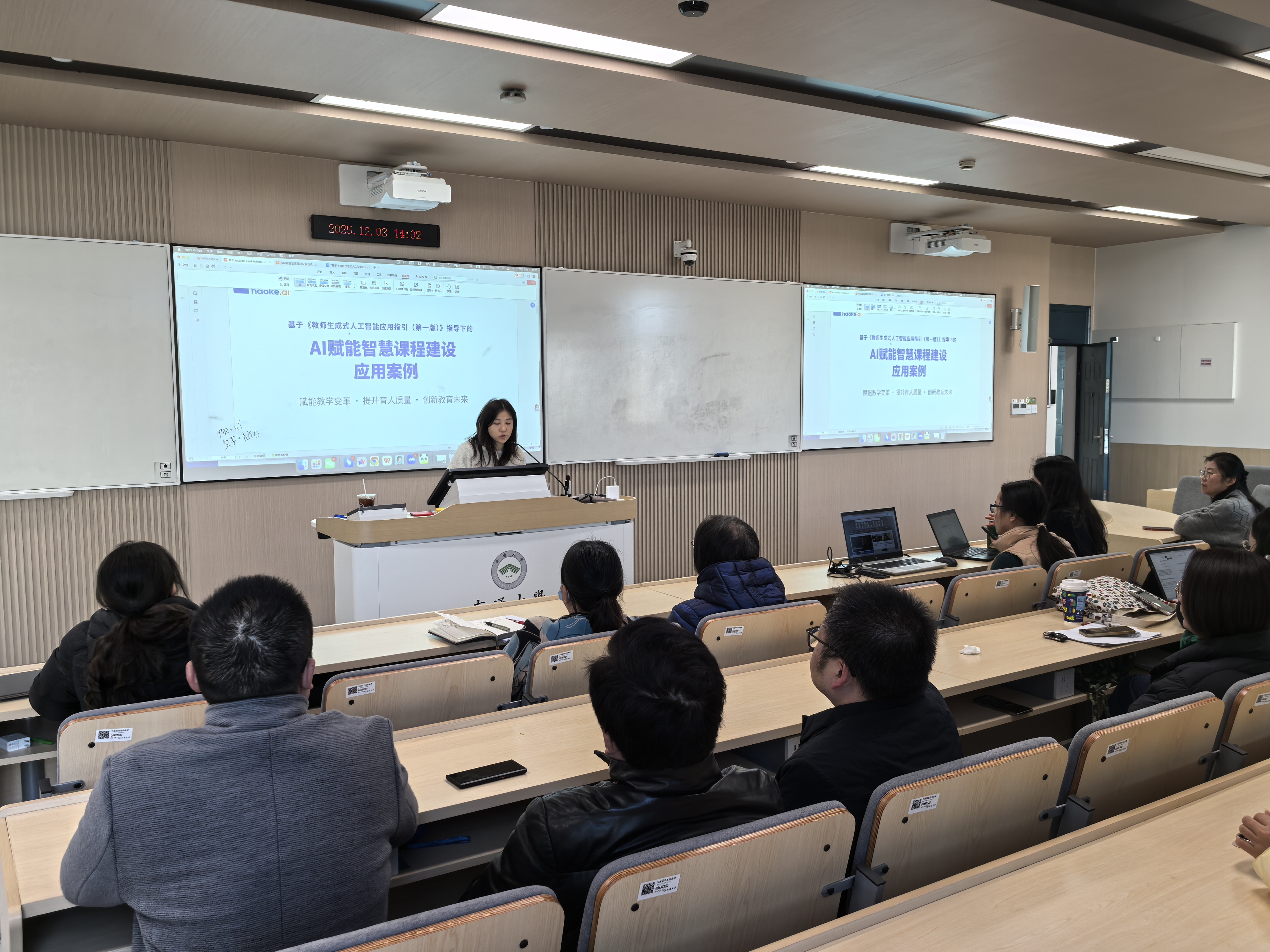 为积极响应国家教育数字化战略行动号召,深化人工智能等信息技术与高等教育的深度融合,将AI 技术全面融入课程建设与教育教学全过程,12 月 3 日下午在啬园校区 38 号楼 514 智慧教室,教务处、数学与统计学院联合金智教育举办第十七期“AI赋能教师教学创新实践工作坊”。学院副院长金晶亮主持活动,来自数学与统计学院及校内其他学院的近30余名教师参与学习交流。顺利举办。