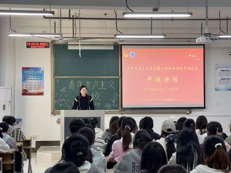 本次培训以强化入党积极分子培养、筑牢青年理想信念为目标,构建了“开班启航—课程深耕—结业赋能”的完整思想淬炼体系。11月7日,培训班在庄严的团歌声中开班,学院团委副书记魏妍妍出席并擘画蓝图。她解读“理论授课+心得分享+实践转化”三维体系,明确围绕“党的创新理论、红色基因传承”两大主题教学,同时对学员提出要求:以习近平新时代中国特色社会主义思想武装头脑坚定信念,严守纪律确保学有所获,学以致用扛起青年责任。学院团委学生干部、各年级班团干部及全体入党积极分子参与开班,开启思想淬炼之旅。