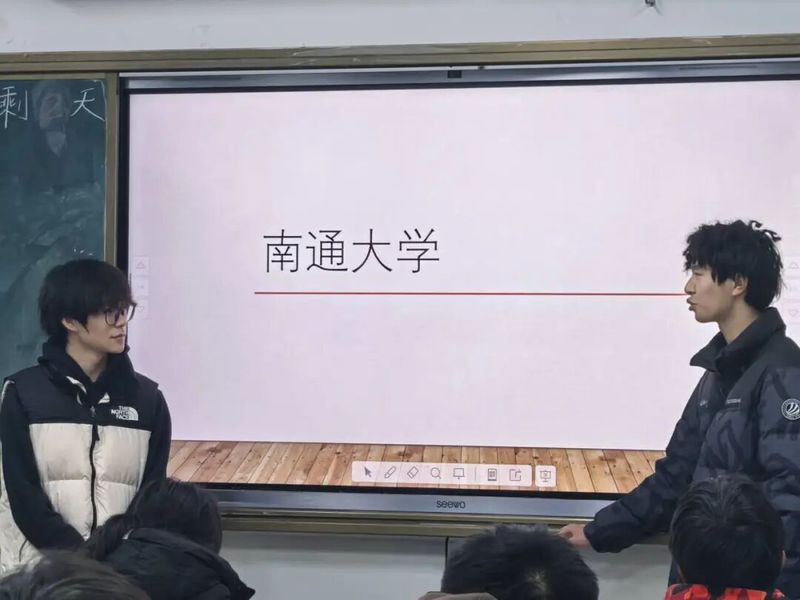 宣讲会伊始,队伍通过播放学校宣传片,展示南通大学校园环境、师资力量、校园文化以及办学成果。随后,队员们结合自身经历,从学习生活、社团活动、科研竞赛、就业前景等方面,详细介绍南通大学的办学特色和优势专业,并分享他们在大学期间的成长故事和心得体会。学长学姐以幽默风趣的语言和生动形象的讲述,吸引在场的每一位枫华学子。通过分享,学生们对南通大学了解更加深入,也对大学生活充满憧憬与向往。