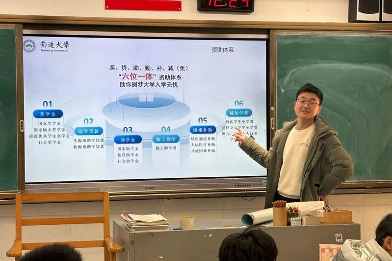 活动前期,“强盛通大”实践团精心制作PPT演示文稿。在活动中,宣讲人娓娓道出南通大学的历史沿革、校园文化、专业特色及学术成就等,并与学弟学妹们分享自己在南通大学的求学经历、成长故事以及所学专业的应用前景。这种轻松愉快的交流方式,迅速拉近彼此距离,让学弟学妹们感受到来自南通大学的温暖与包容,也为前来咨询的学弟学妹们提供全面而深入的解答。
