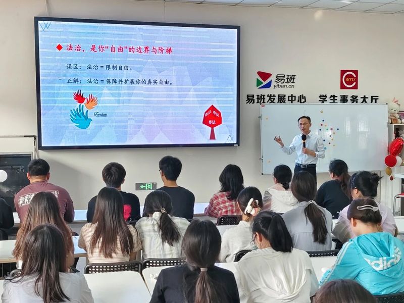 为帮助学生们熟悉法律条文,树立法治信仰,10月15日,数学与统计学院与临江社区合作,邀请了南通商合律师事务所岑志剑律师、狼山镇司法所所长陈菲菲、临江社区法律明白人吴湛和其他工作人员,于学生事务大厅开展 “'宪'护青春,'典'亮未来”法治宣传教育系列活动。