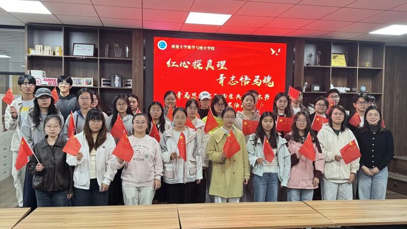 为深入学习贯彻习近平新时代中国特色社会主义思想和党的二十大精神,落实立德树人根本任务,引导青年学生从红色经典中汲取精神力量、坚定理想信念。南通大学数学与统计学院以抗战胜利八十周年为契机,于2025年10月28日在啬园校区桃园“一站式”学生社区举办“红心探真理,青志悟'马'魂”青马思想汇——师生共读一本书活动。