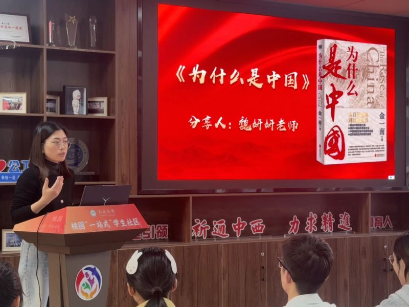 魏妍妍老师在领学中,以金一南教授《为什么是中国》的历史观照与精神内核为主线,阐释了其对于青年学子的深刻启示。她指出,该书通过追溯中国共产党在艰辛历程中发动群众、组织群众、团结群众的实践,展现了绝境中凝聚的磅礴伟力,揭示了坚定理想信念的历史意义,为认清当代中国国际形势提供了深层逻辑。她鼓励同学们将理想信念融入专业学习,在未来的教书育人中传承红色基因,在数据分析中坚守家国情怀,让理论宣讲所传递的精神内核成为专业成长的内在动力,在新时代征程中书写属于自己的报国篇章。