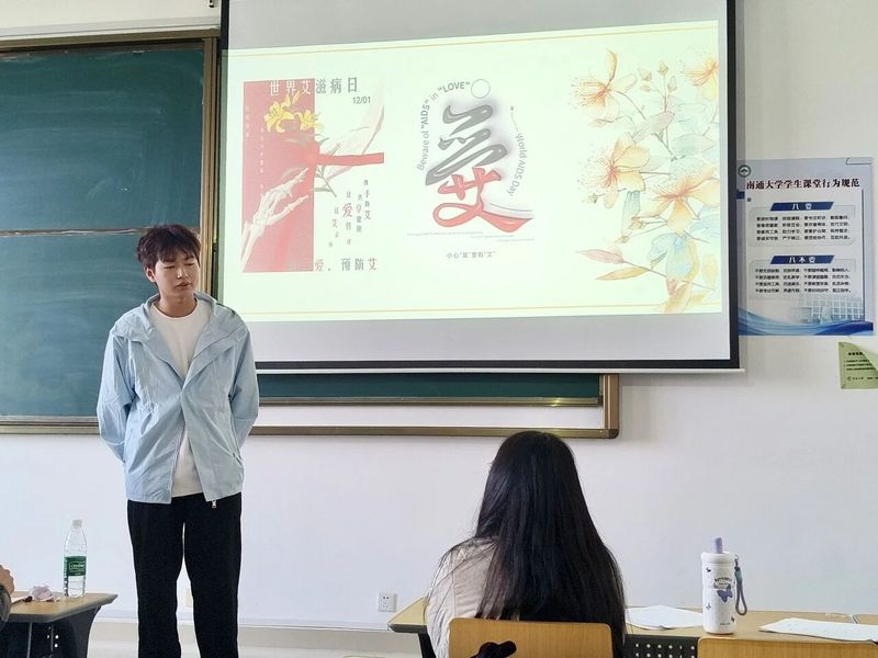启东校区的比赛聚焦“防艾同伴教育”主题,设置两大核心环节。在自我介绍与才艺展示环节,选手们在2分钟内用精炼的语言勾勒个人特色,部分选手还带来了话剧、唱歌、舞蹈等精彩才艺表演,凭借亮眼表现斩获额外加分。