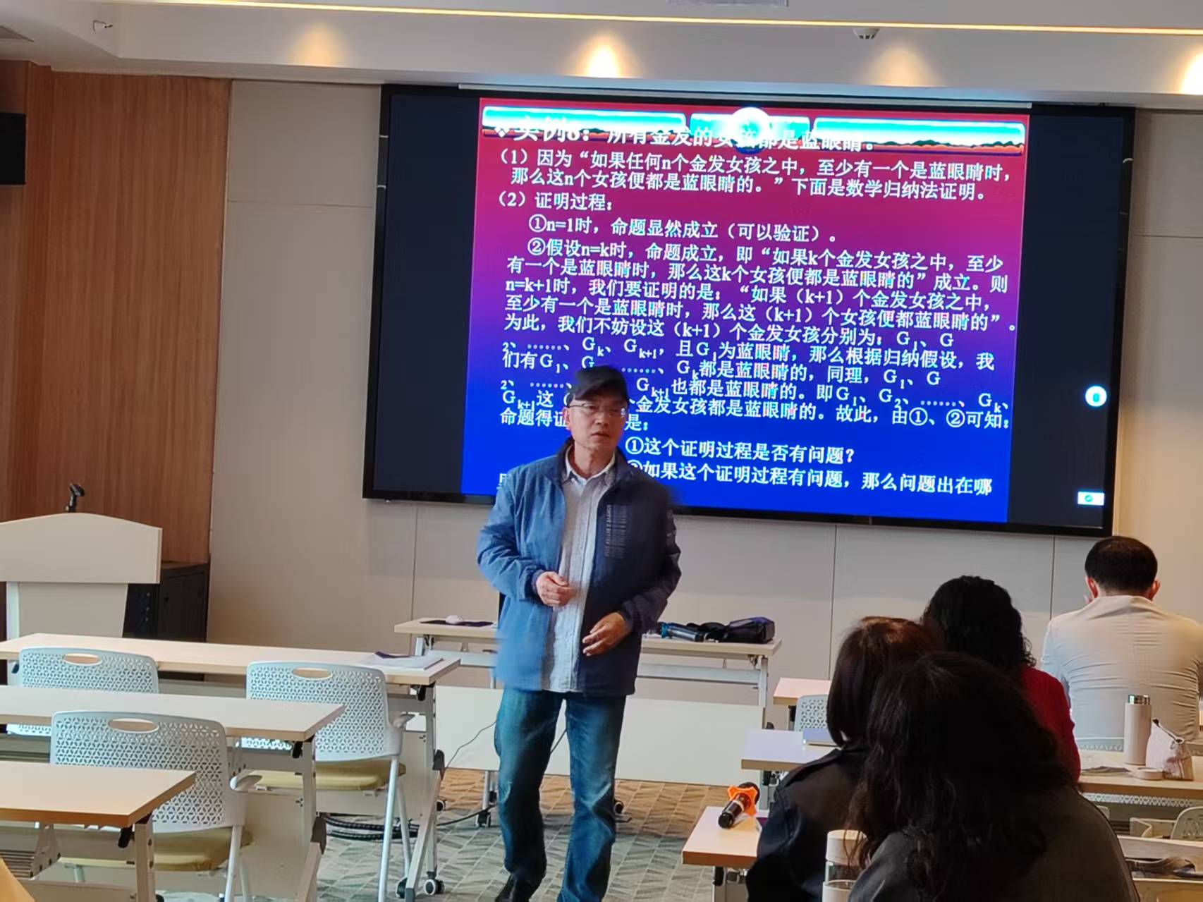 南京师范大学博士生导师徐文彬教授的报告《例说数学观及其教学》,借助大量鲜活的一线教学案例,生动演绎了树立正确数学观的重要性。他指出,数学教学的核心在于教思维,并对如何培养学生超常规思维提出了诸多独到见解。报告高屋建瓴、深入浅出,令学员们豁然开朗,别有一番天地。